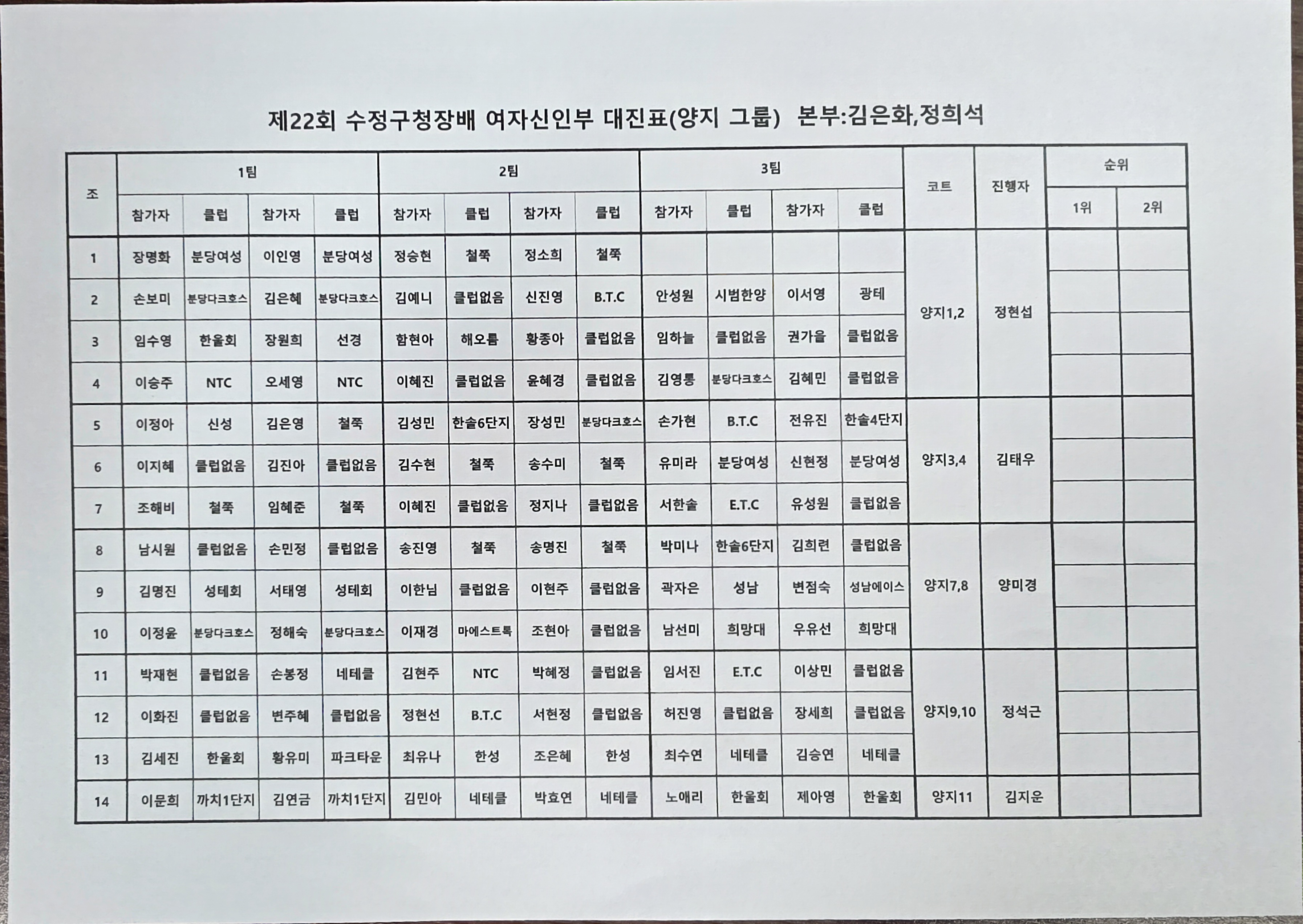 여자신인부:양지시립테니스장 -성남시테니스협회-
