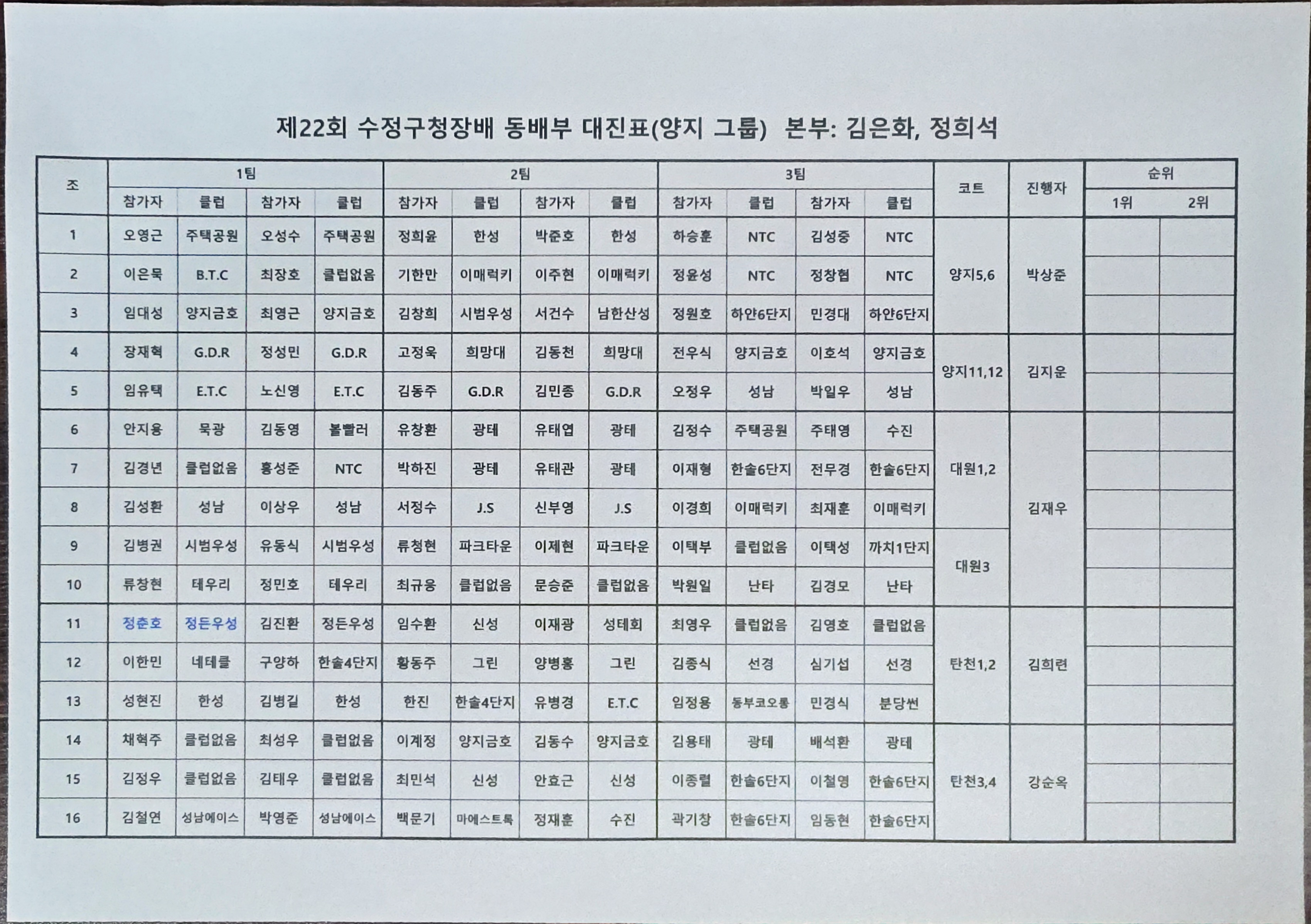 동배부:양지시립,수내시립,탄천실내,대원시립,낙생대공원 시립테니스장.-성남시테니스협회-