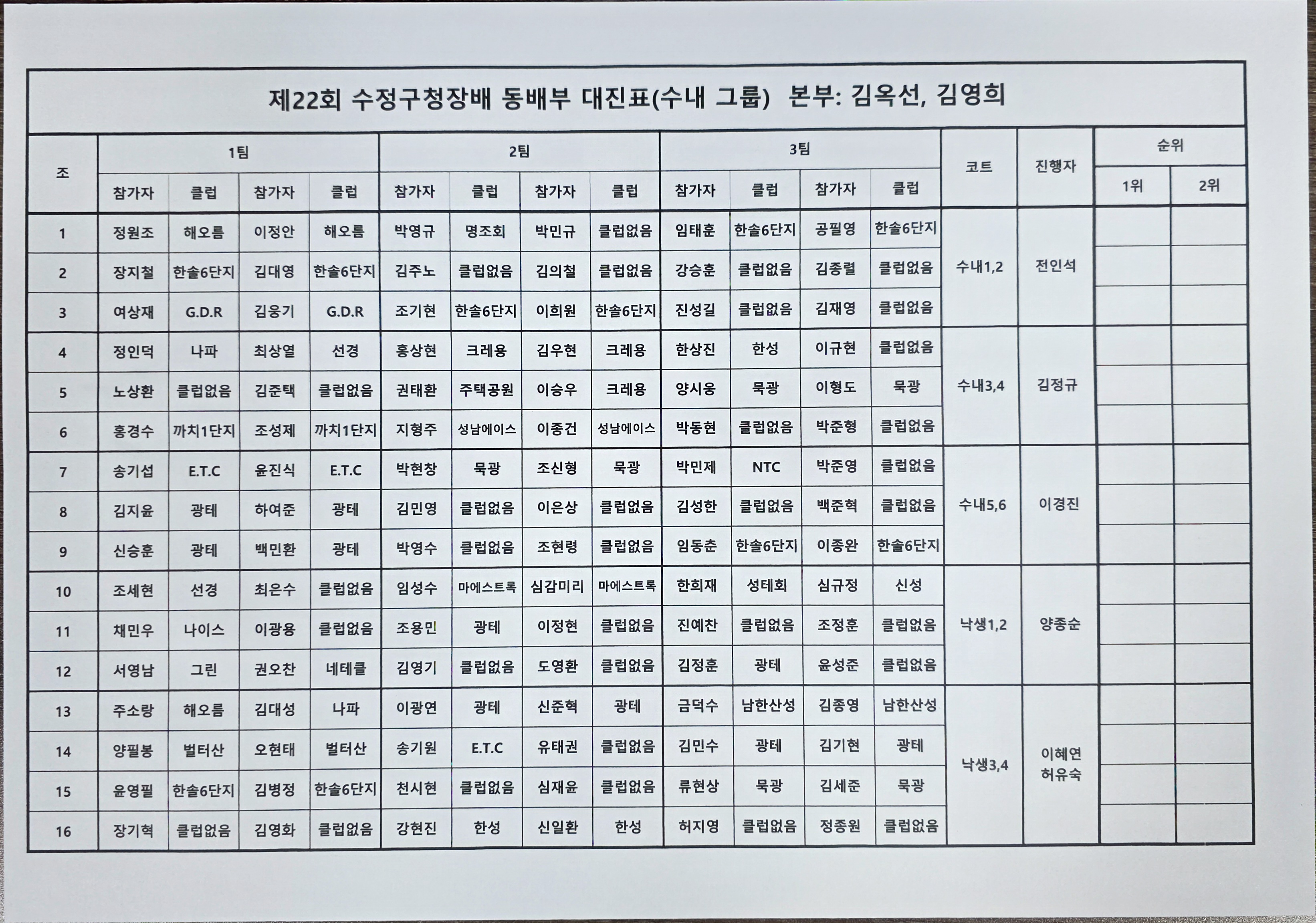 제22회 수정구청장배 동배부(수내그룹)대진표