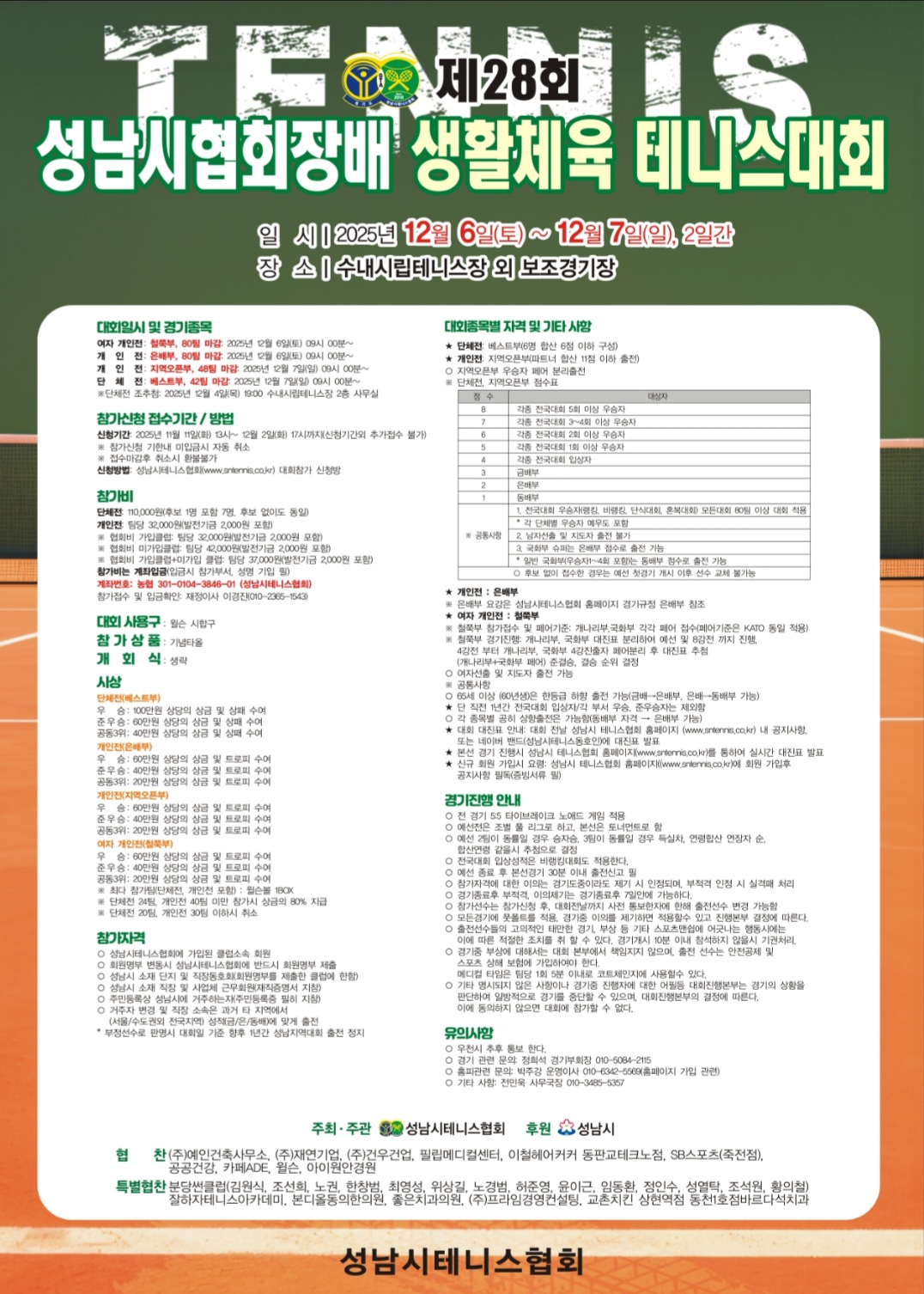■제28회 성남시협회장배 생활체육 테니스대회 포스터 안내■