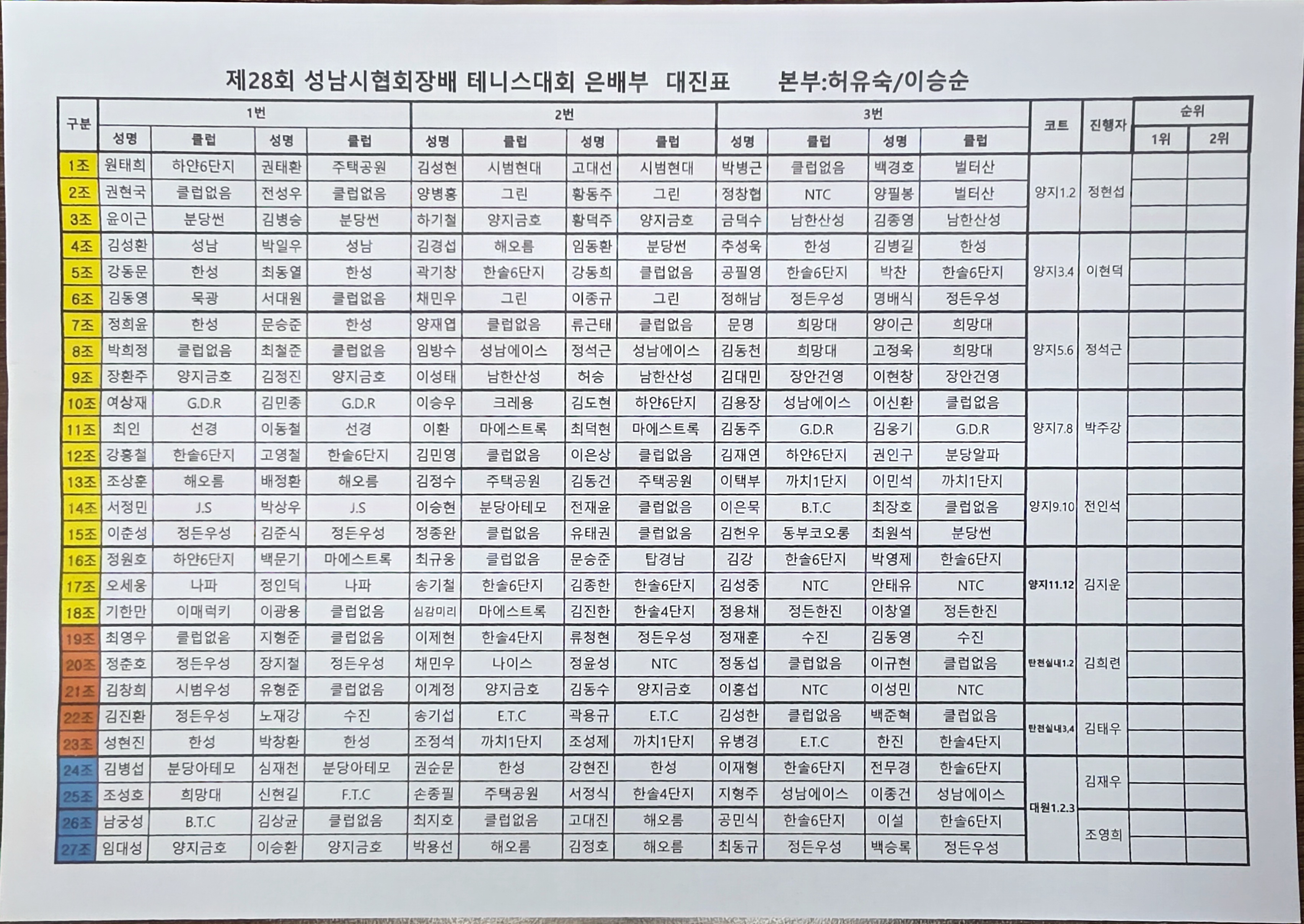 ◇제28회 성남시협회장배 은배부 대진표 안내◇