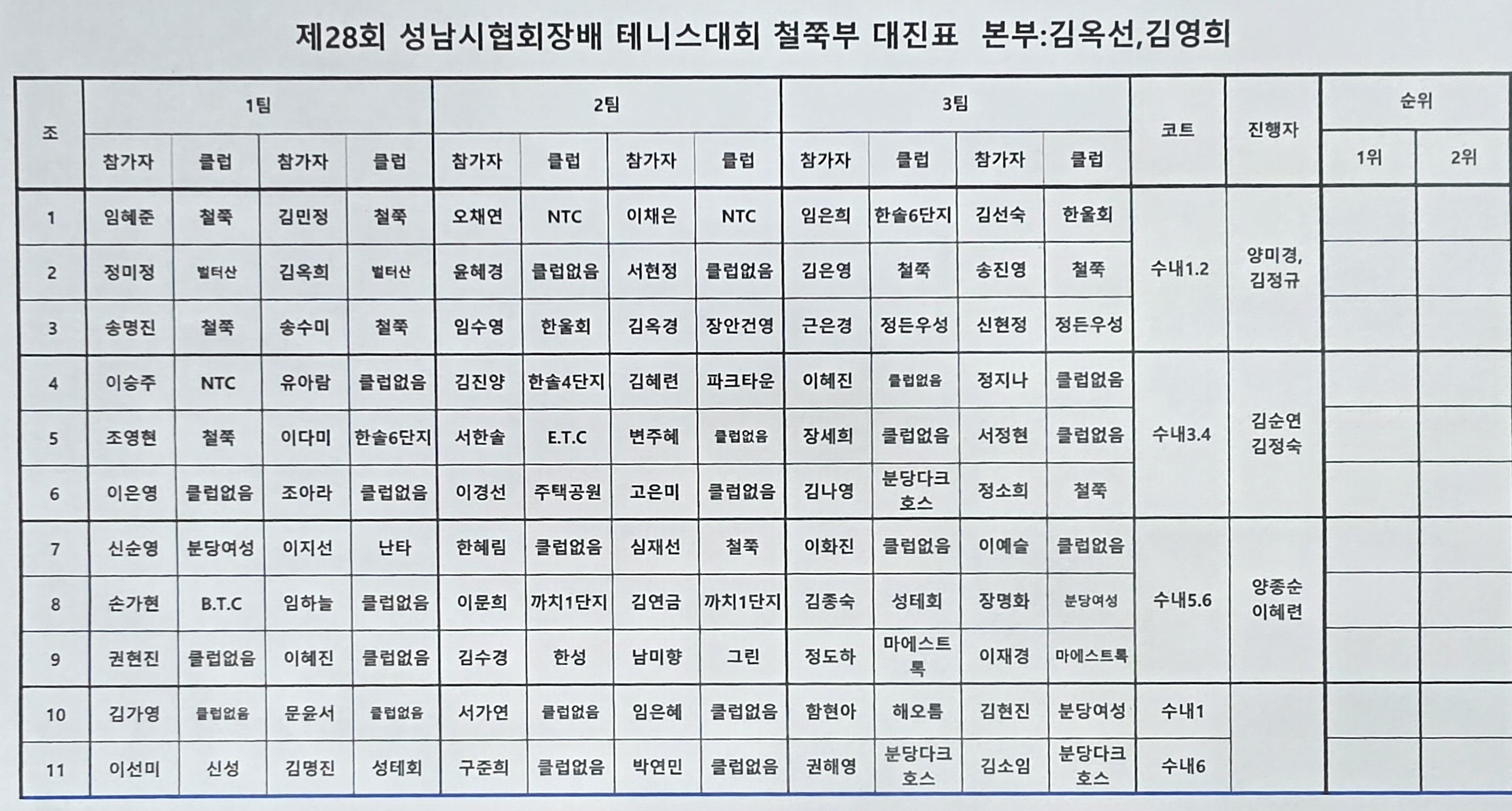 ◇제28회 성남시협회장배 철쭉부 대진표 안내◇