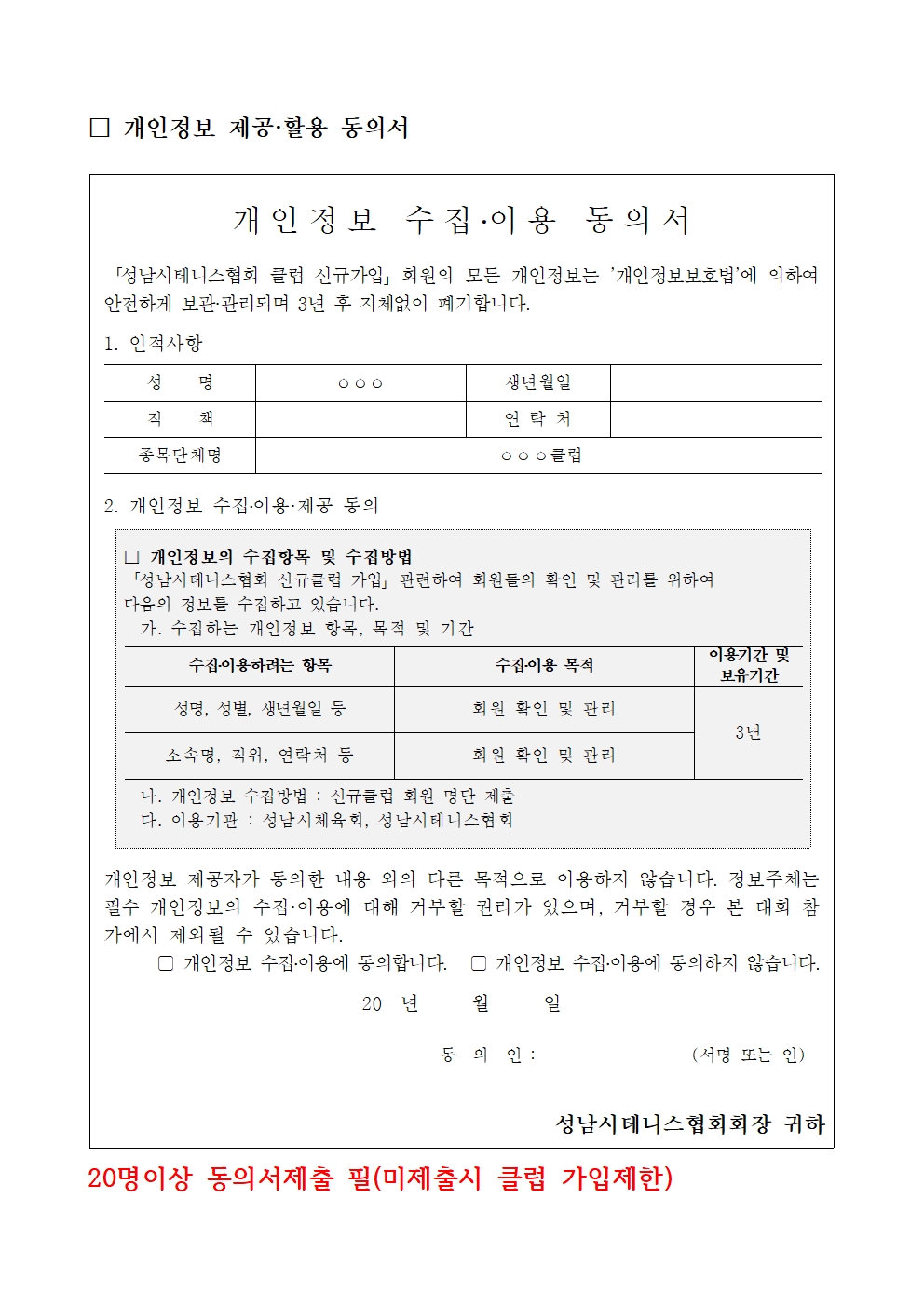 신규클럽 가입시 아래 서류룰 작성 사무국장 또는 운영이사에게 제출하면 검토후 승인 절차를